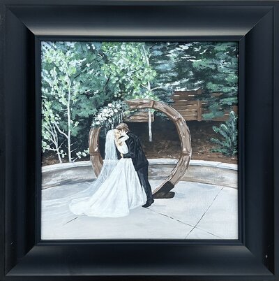 We’ll start with a consultation call where you’ll meet Avery, talk through your vision, and discuss your wedding day details. This is where we’ll go over which painting option you’re interested in — a live wedding painting or mini guest portraits — and talk about style, size, color palettes, and any must-have elements you’d like included.